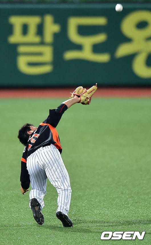 연장 12회말 2사 주자 1루 삼성 박한이가 좌익수 오른쪽 뜬공을 날려 롯데 좌익수 하준호가 몸을 날렸으나 잡아내지 못하며 끝내기 안타가 되고 있다. / rumi@osen.co.kr