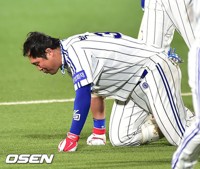 박한이,'끝내기 물 세례가 입에 들어갔어'
