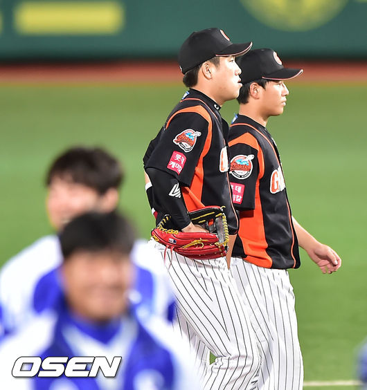 연장 12회말 2사 주자 1루 삼성 박한이가 좌익수 오른쪽 뜬공을 날려 롯데 좌익수 하준호가 몸을 날렸으나 잡아내지 못하며 끝내기 안타가 된 후 끝내기 물 세례를 받고 있을때 전준우와 하준호가 퇴장하고 있다. / rumi@osen.co.kr