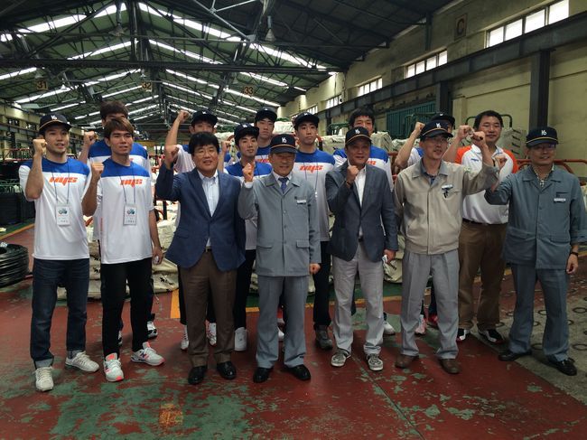 선수단은 공장 도착 후 이이문 부회장 및 임직원들과 인사를 시작으로 고려제강 회사 소개 및 홍보 영상을 시청한 뒤 이번 사진 액자를 전달했다.