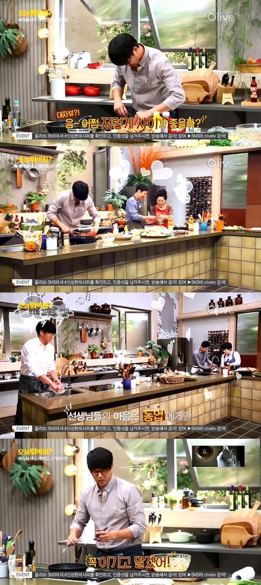 2일 오후 12시 방송된 올리브TV ‘오늘 뭐 먹지’에서는 빈대떡 대가를 모시고 요리를 배우는 신동엽과 성시경의 모습이 그려졌다.