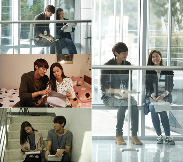 사진에서 나란히 앉아 대본을 읽고 있는 김영광과 경수진은 드라마 속 장면처럼 알콩달콩한 분위기를 풍기며 환상적인 호흡을 선보였다. 극 중 같은 회사, 같은 부서의 직장 동기로 등장하는 김영광과 경수진은 회사에서도 집에서도 언제 어디서나 옆에 꼭 붙어서 대본을 열공 하는 모습으로 실제 연인 같은 완벽한 케미를 자랑하고 있다.