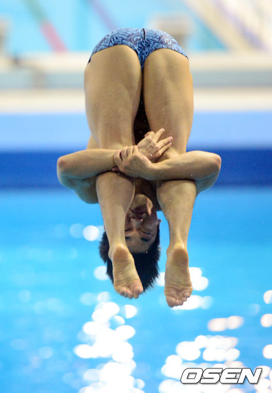 2일 오후 인천 문학박태환수영장에서 열린 제17회 인천 아시안게임 다이빙 남자 3m 스프링보드 결승전에서 김영남이 다이빙을 하고 있다.