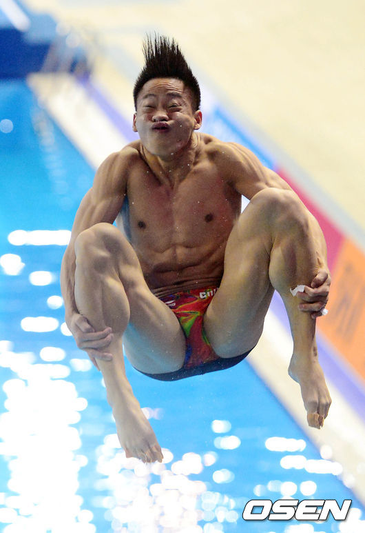 2일 오후 인천 문학박태환수영장에서 열린 제17회 인천 아시안게임 다이빙 남자 3m 스프링보드 결승전에서 중국 흐어 차오가 다이빙을 하고 있다.