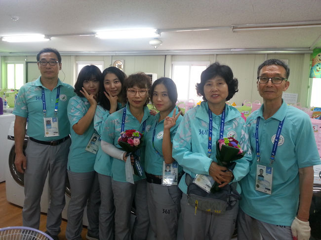 평소 세탁물을 맡기러 오던 북한 여자축구선수 2명이 지난 1일 일본을 꺾고 금메달을 목에 건 뒤 시상식 때 받은 꽃다발을 선수촌 세탁장에 건네며 그동안 세탁서비스에 대한 감사의 표시를 했기 때문이다.