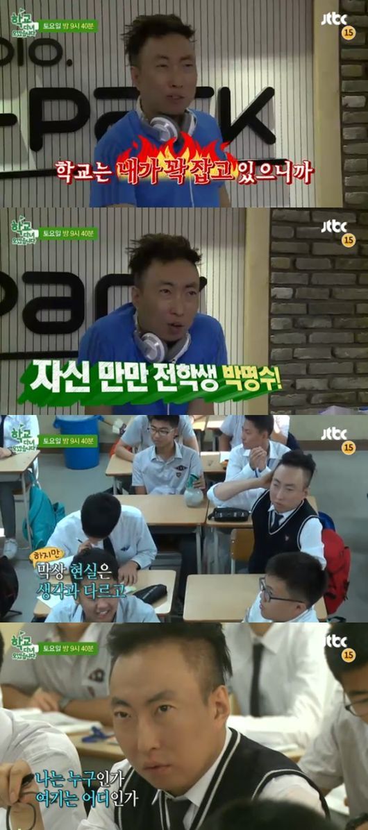 박명수는 지난달 22일 방송인 에네스 카야, 줄리안 퀸타르트와 함께 인천의 인하사대부고에서 고등학교 1학년 생활을 했다.