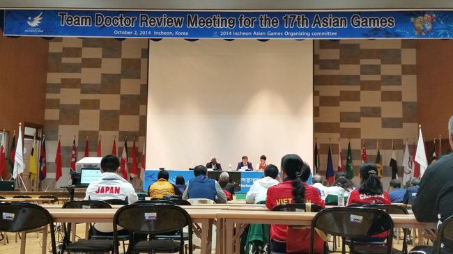2014인천아시아경기대회 조직위원회(위원장 김영수)는 2일 인천 남동구 구월아시이드선수촌 내 NOC서비스센터 선수단장 회의실에서 OCA 의무반도핑위원회(위원장 제가테산)와 합동으로 대회에 참가한 각국 팀 닥터들로부터 의견을 청취하는 자리를 가졌다.