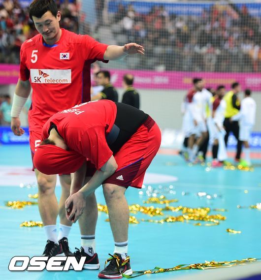 한국은 2일 인천 선학핸드볼경기장에서 열린 제17회 인천아시안게임 남자 핸드볼 결승전 카타르와의 경기에서 선전 끝에 21-24로 졌다. 이동명과 이창우, 두 명의 골키퍼가 연신 상대 슈팅을 막아줬지만 공격에서 해법을 찾지 못했다. 힘과 높이가 뛰어난 카타르 수비는 그만큼 뚫기 어려웠다.
