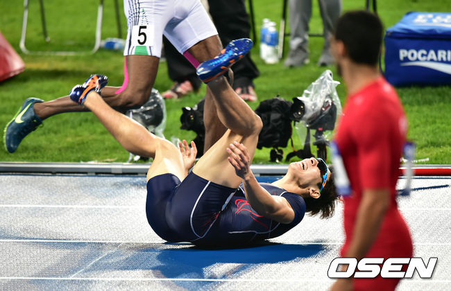 2일 오전 인천 아시아드 주경기장에서 열린 제17회 인천 아시안게임 육상 남자 1600m 계주에서 여호수아의 몸을 날리는 투혼으로 짜릿한 은메달을 거머쥐었다.