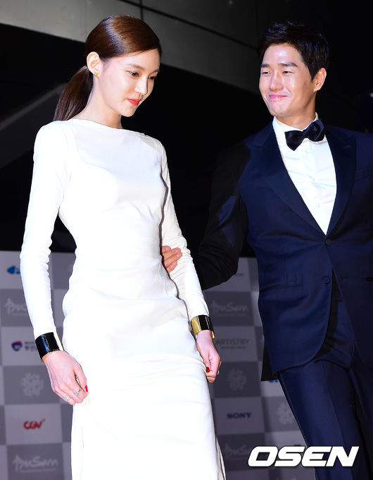 배우 유지태와 차예련이 레드카펫을 밟고 있다.