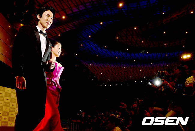 배우 유연석과 류현경이 레드카펫을 밟고 있다.