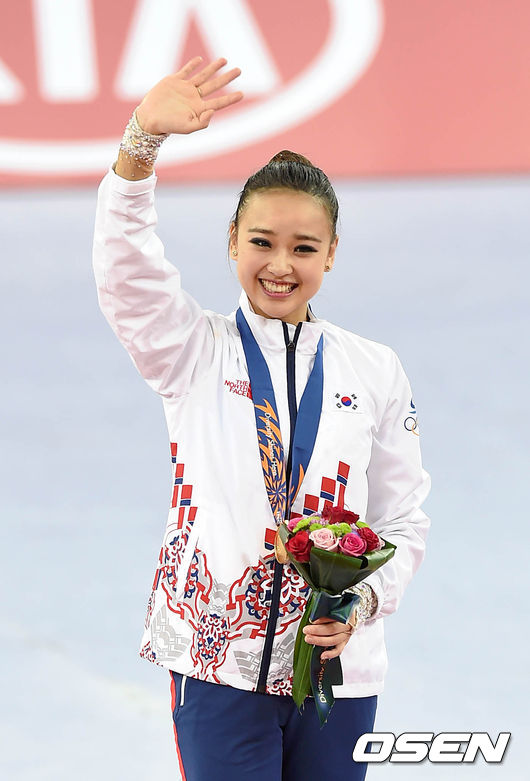 금메달을 획득한 한국 손연재가 포즈를 취하고 있다. /sunday@osen.co.kr