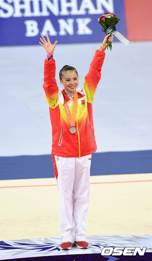 손연재의 라이벌로 꼽히는 덩썬웨(22, 중국)는 리본(17.483), 후프(17.583), 볼(17.400), 곤봉(17.866)까지 총점 70.332점으로 손연재에 이어 은메달을 목에 걸었다. 3위는 총점 68.349점의 아나스타샤 세르드유코바(우즈베키스탄)가 차지했다.