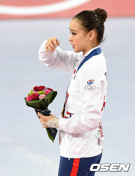 금메달을 획득한 한국 손연재가 눈물을 훔치고 있다. /sunday@osen.co.kr