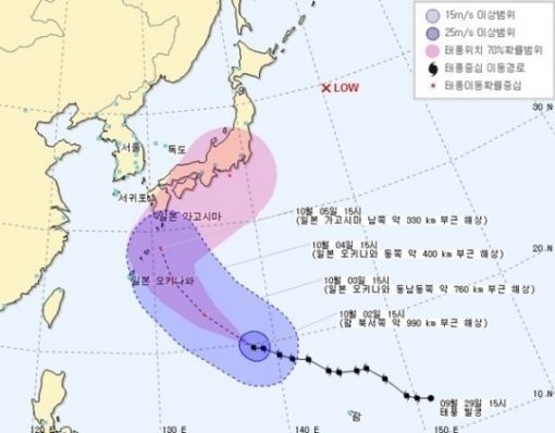 태풍 판폰 예상 경로에 기상청은 "오는 4일 오후 9시쯤에는 일본 오키나와 동남동쪽 약 360km 해상까지 이동할 것이다"라며 "이후 6일쯤에는 일본 가고시마쪽으로 상륙할 가능성이 클 것이다"라고 전했다.