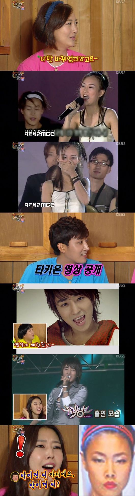 이날 장윤정의 MBC 대학가요제 대상 수상 당시의 모습, 손호준이 그룹 타키온으로 활동했던 과거 영상, 한혜진이 모델 시절의 사진, 그리고 허각이 가수가 되기 전 7년전 환풍기 수리공으로 일했던 모습이 차례로 공개되어 눈길을 사로잡았다.
