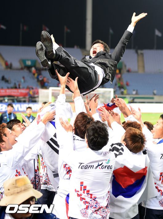 이광종 감독이 지휘하는 아시안게임 축구대표팀은 2일 인천문학경기장서 열리는 2014 인천 아시안게임 남자 축구 북한과 결승전에서 연장전까지 가는 접전 끝에 1-0 승리를 거뒀다. 28년 만의 금메달을 노린 한국은 이날 북한을 제치고 대회 우승을 차지하며 오랜 한을 풀었다.