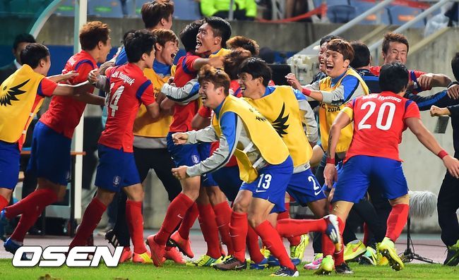 연장후반 임창우의 결승골때 대표팀 선수들이 기뻐하고 있다. / soul1014@osen.co.kr