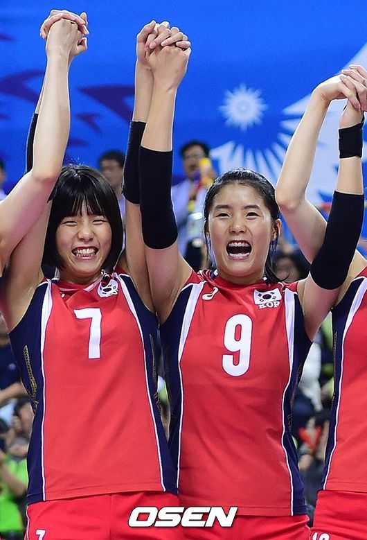 언니들과 함께 영광의 순간을 함께한 이가 있다. 10대 소녀에서 여자 배구의 차세대 세터로 거듭난 이다영이다. 16살 차이가 나는 '베테랑 세터' 이효희와 번갈아 코트를 누볐다. 이다영의 진가는 중요한 순간 발휘됐다. 세트스코어 2-0으로 앞서가던 3세트, 13-13. 승부의 추를 한국 쪽으로 기울게 하는 천금 블로킹을 성공시켰다.