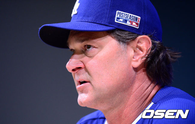 다저스 매팅리 감독이 기자회견을 하고 있다.