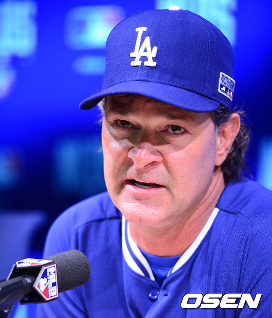 다저스 매팅리 감독이 기자회견을 하고 있다.