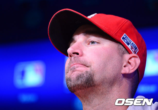 세인트루이스 아담 웨인라이트가 기자회견을 하고 있다.