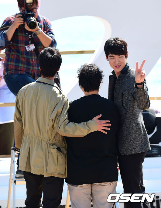 3일 오후 부산광역시 해운대구 중동 해운대 비프빌리지에서 열린 영화 '제보자'(임순례 감독) 야외무대인사에서 유연석이 팬 서비스를 하고 있다.