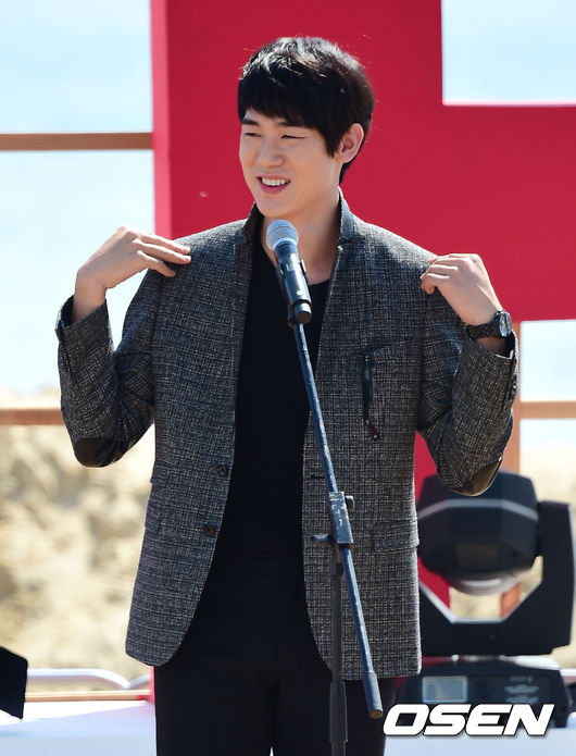 3일 오후 부산광역시 해운대구 중동 해운대 비프빌리지에서 열린 영화 '제보자'(임순례 감독) 야외무대인사에서 유연석이 어깨에 대한 이야기를 하고 있다.