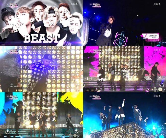 비스트는 3일 오후 방송된 KBS 2TV 가요프로그램 ‘뮤직뱅크’ 충북 오송 엑스포 특집에서 ‘굿 럭(Good Luck)’ 무대를 선보였다.