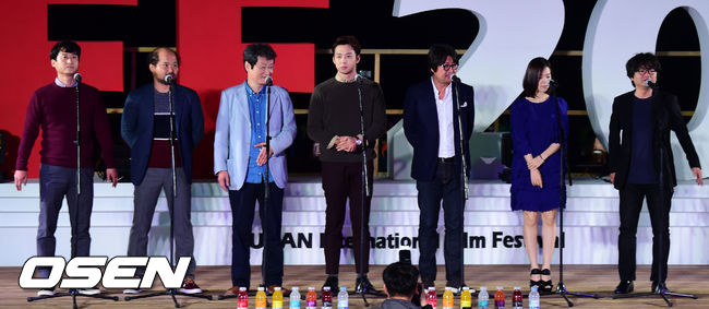 3일 오후 부산광역시 해운대구 중동 해운대 비프빌리지에서 열린 영화 '해무' 야외무대인사에서 김윤석이 인사말을 전하고 있다.