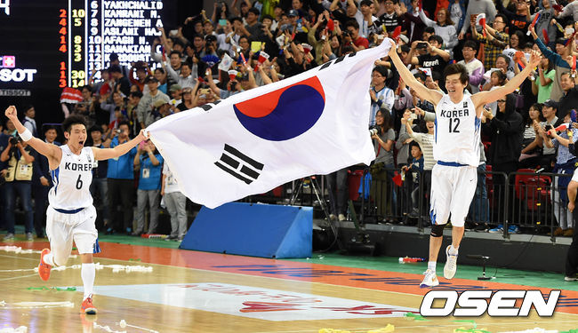 유재학 감독이 이끄는 남자농구 대표팀은 3일 오후 인천삼산체육관에서 개최된 2014 인천 아시안게임 남자농구 결승전에서 이란과 접전 끝에 79-77로 승리를 거뒀다. 이로써 한국은 2002년 부상 아시안게임 금메달 후 12년 만에 꿈에 그리던 정상을 밟았다. 아울러 한국농구는 아시안게임에서 남녀가 최초로 동반우승을 거두는 쾌거를 달성했다.