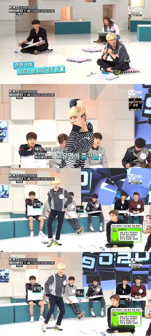 이에 MC 전현무는 걸그룹 댄스타임으로 패자부활전을 제안했고, 이에 수호는 씨스타의 ‘나 혼자’ 춤을 추며 요염한 매력을 과시했다.