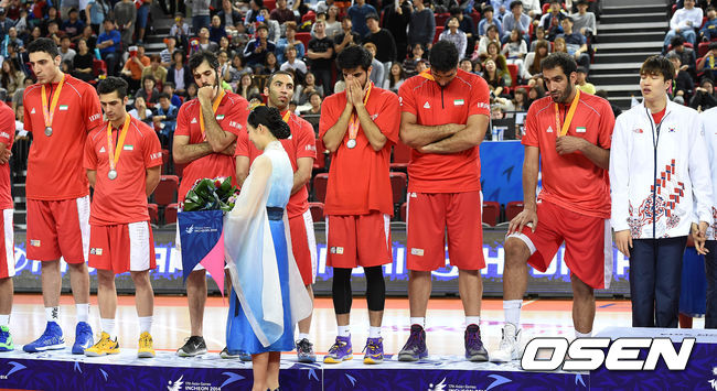 은메달을 목에 건 이란 선수들이 아쉬운 표정을 짓고 있다. /sunday@osen.co.kr