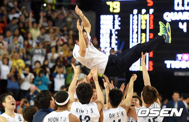 2014 농구 월드컵서 전패를 당한 후 부진할 것이라는 전망에도 불구하고 금메달을 따낸 유재학 감독은 선수들에게 모든 공을 돌렸다.