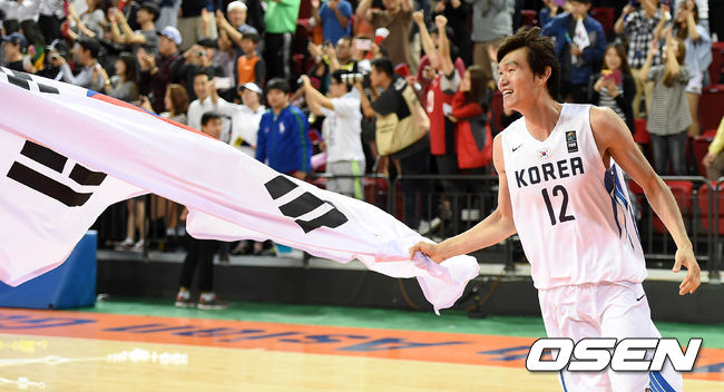경기 종료 후 금메달을 차지한 한국 김주성이 태극기를 들고 환호하고 있다. /sunday@osen.co.kr