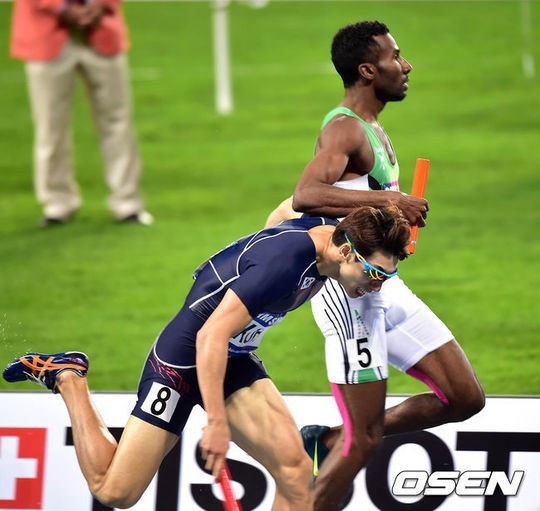 이어 1600m 계주에서도 막판 대역전극을 만들었다. 은메달을 놓고 다투던 한국은 마지막 주자 여호수아가 머리를 내미는 투혼을 발휘해 사우디아라비아와 똑같은 3분04초03에 들어왔으나 간발의 차로 앞서 은메달을 목에 걸었다. 지쳐서 앞으로 나가기도 힘든 상황에 나온 여호수아의 투지가 빛났다. 이러한 활약을 바탕으로 여호수아는 한국의 폐회식 공동 기수로 선정되기도 했다.