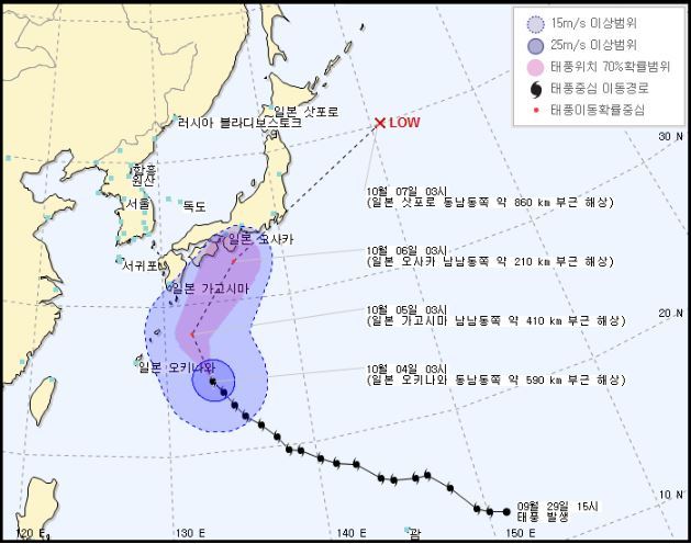 이 태풍은 일요일 오키나와 동해상을 지나 월요일쯤 일본 열도를 따라 빠르게 이동할 것으로 예상된다.