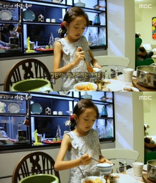특히 변정수의 어린 딸 정원은 아기들 앞에서 재밌는 소리를 내면서 아기들을 웃게 만들고, 아기를 돌보느라 엄마가 바쁘자 혼자 밥을 챙겨 먹는 기특한 모습을 보였다.