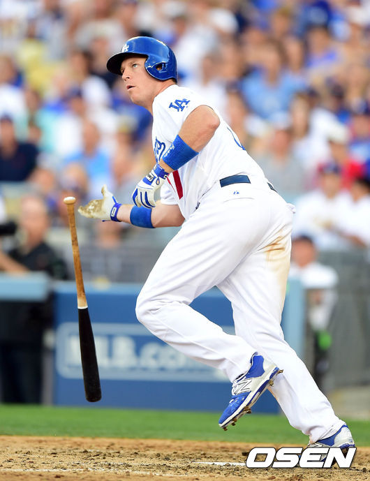 5회말 1사 1루 A.J 엘리스가 투런 홈런을 치고 있다.