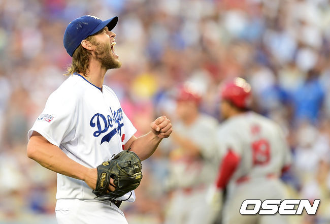 7회초 무사에서 다저스 커쇼가 연속안타로 실점하며 괴성을 지르고 있다./jpnews@osen.co.kr