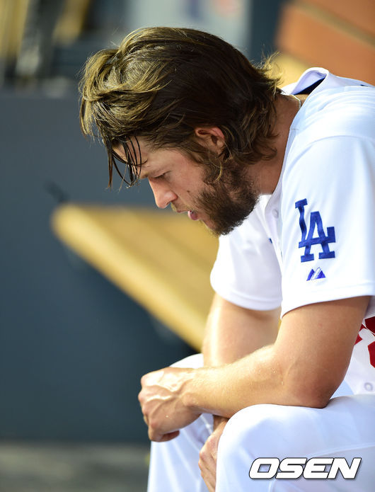 7회초 역전을 허용하고 강판당한 다저스 커쇼가 더그아웃에서 아쉬워하고 있다./jpnews@osen.co.kr