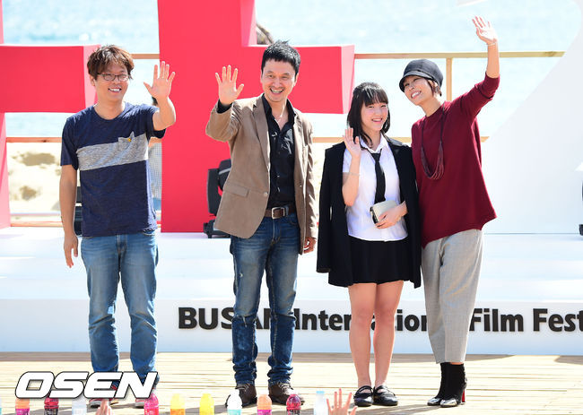4일 오후 부산광역시 해운대구 중동 해운대 비프빌리지에서 열린 영화 '사랑이 이긴다' 야외무대인사에서 민병훈 감독, 장현성, 오유진, 최정원이 포토타임을 갖고있다.