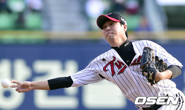 4일 오후 서울 잠실구장에서 열린 '2014 한국야쿠르트 세븐 프로야구 LG 트윈스와 넥센 히어로즈의 경기, 1회초 LG 선발 투수 우규민이 힘차게 공을 던지고 있다.