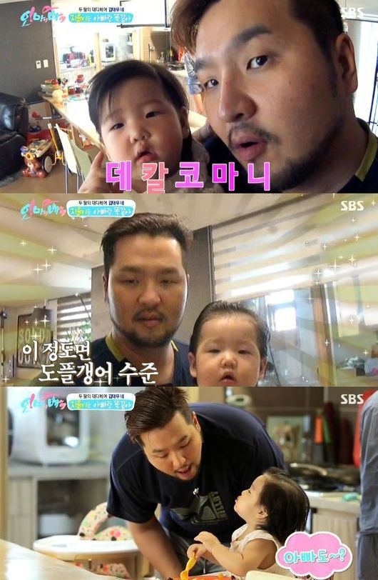 김태우는 4일 오후 방송된 SBS 예능프로그램 '오 마이 베이비'에서 둘째 딸 지율을 돌보며 같은 외모, 같은 표정 등 붕어빵 가족임을 보여줬다.
