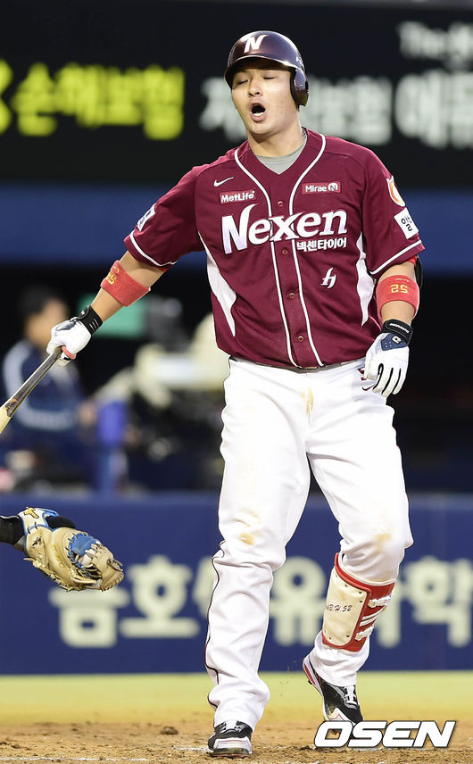 4일 오후 서울 잠실구장에서 열린 '2014 한국야쿠르트 세븐 프로야구 LG 트윈스와 넥센 히어로즈의 경기, 5회초 무사 상황 선두타자 넥센 박병호가 삼진아웃을 당하고 아쉬워 하고 있다.