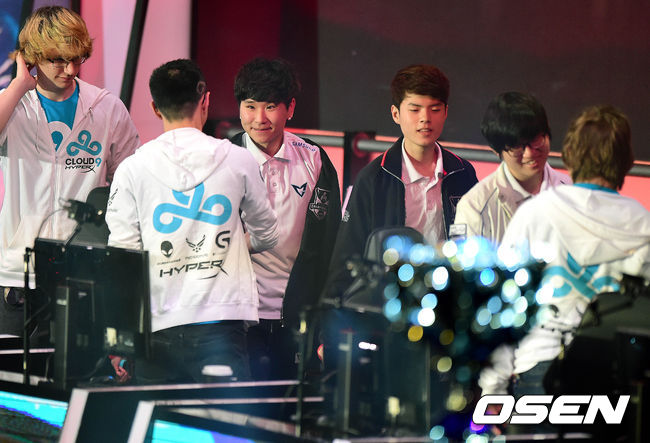 승리를 거둔 삼성 블루 선수들이 C9 선수들과 인사를 나누고 있다./dreamer@osen.co.kr