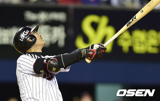 4일 오후 서울 잠실구장에서 열린 '2014 한국야쿠르트 세븐 프로야구 LG 트윈스와 넥센 히어로즈의 경기, 5회말 1사 주자 2,3루 박용택이 1타점 적시안타를 치고 있다.