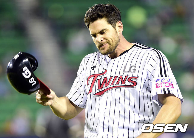 4일 오후 서울 잠실구장에서 열린 '2014 한국야쿠르트 세븐 프로야구 LG 트윈스와 넥센 히어로즈의 경기, 6회말 2사 주자 2루, LG 손주인의 대타로 나온 스나이더가 외야 플라이로 아웃되고 아쉬워하고 있다.