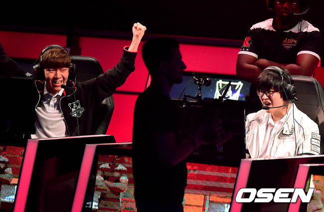 승리를 거둔 삼성 블루 스피릿 이다윤과 다데 배어진이 기뻐하고 있다./dreamer@osen.co.kr