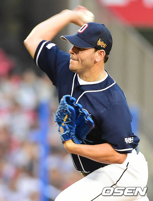 두산 베어스 우완투수 유니에스키 마야(33)가 NC 다이노스전 3경기 연속 7이닝 이상 소화하며 호투했다. 개인 한 경기 최다이닝-최다 탈삼진을 기록하며 역투했지만 승리와 인연을 맺지는 못했다. 8회 2사후 이종욱에게 허를 찔렸다.